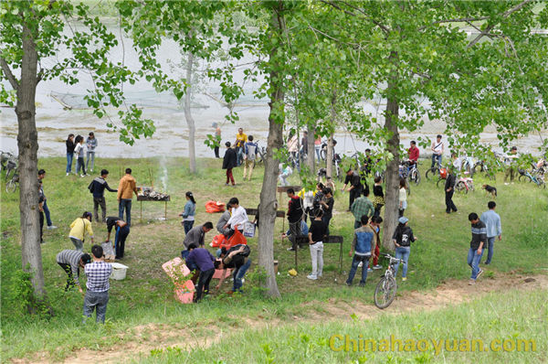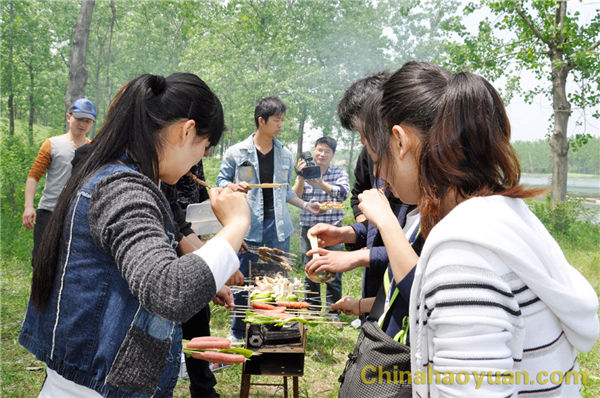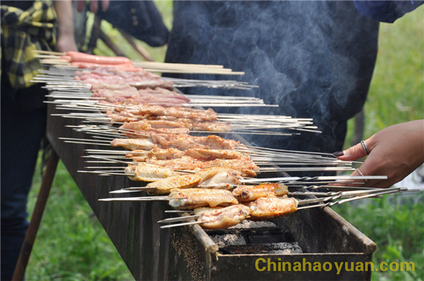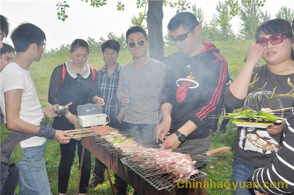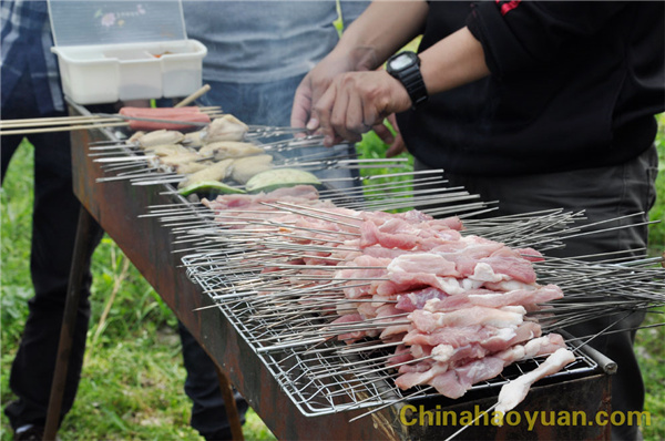 稍作休息,大家便開始了此次燒烤活動(dòng)的準(zhǔn)備工作,拾柴火、生爐子、串肉串,一片熱火朝天的忙碌景象。